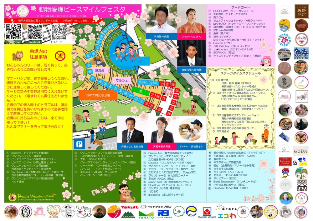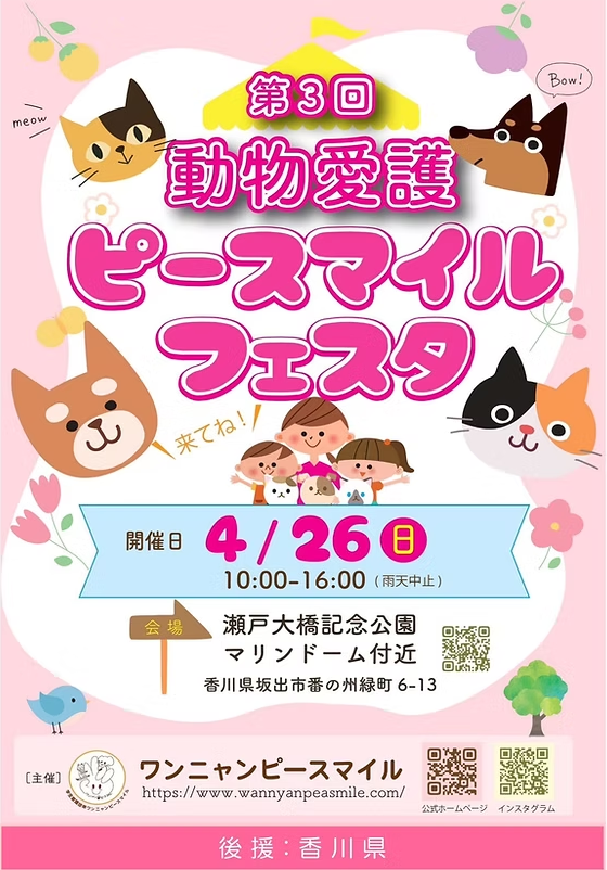 開催日時 令和8年4月26日(日曜日) 10:00 ~ 16:00 (雨天中止) 主 催 ワンニャン ピースマイル